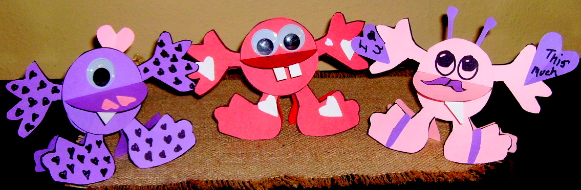 Beware you’re going to get bitten by the Love Bug. The sight of these little bugs makes you want to giggle and make a ton of them. If you were going to have a Valentine party, they would be perfect little name cards to gift your guests with. This week the 3rd Grade are going to be making these. We should get lots of unique bugs!! The directions for “Love Bugs,” can be found under the Valentine’s Day Projects Gallery in the sidebar. Click the photo on the left to see three different bugs.