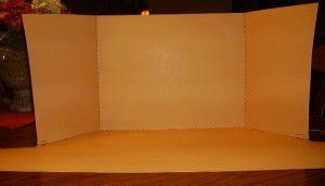 5. The top of the poster board folds up, the 11″ sides fold forward, and the 1″ pieces fit behind the 11″ sides. Later we will use a paper clip to hold the sides in place.